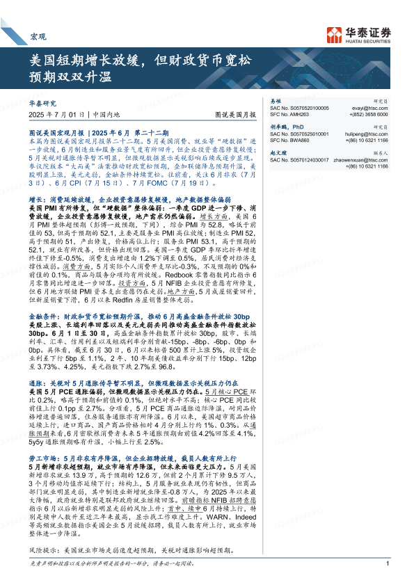 【华泰证券】【20250701】图说美国月报:美国短期增长放缓,但财政货币宽松预期双双升温-17页