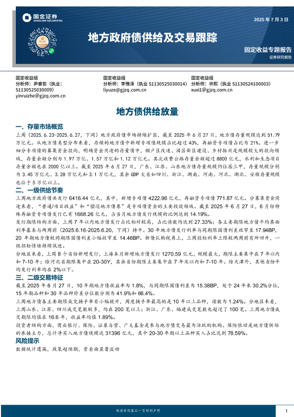 【国金证券】【20250703】地方政府债供给及交易跟踪:地方债供给放量-11页