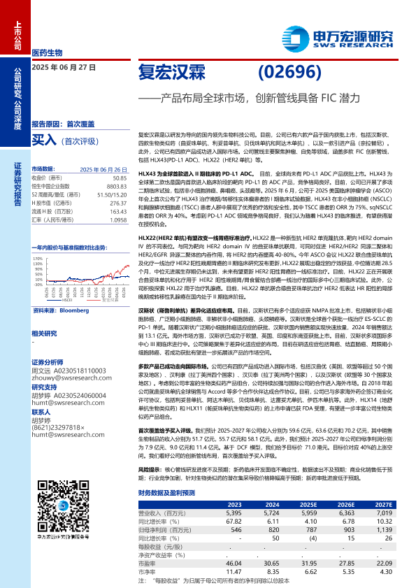【申万宏源】【20250627】复宏汉霖产品布局全球市场,创新管线具备FIC潜力-34页