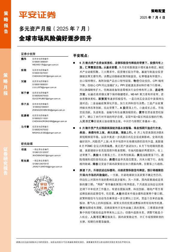【平安证券】【202507】多元资产月报(2025年7月)-26页