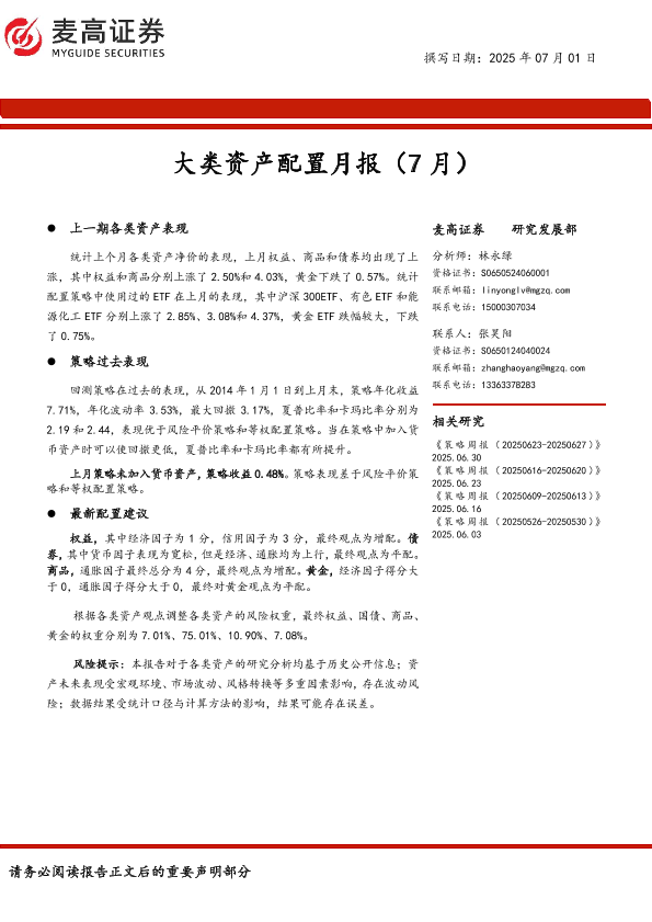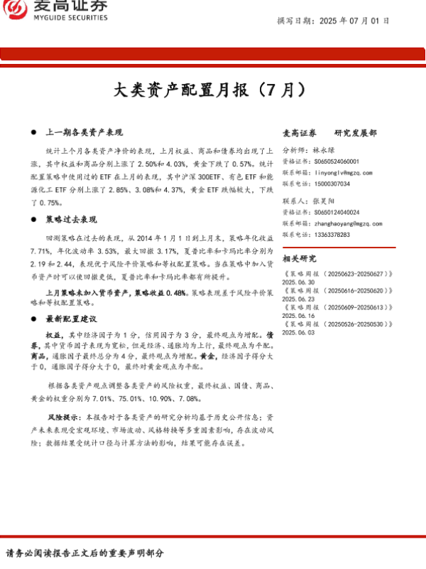 【麦高证券】【20250701】大类资产配置月报(7月)-11页
