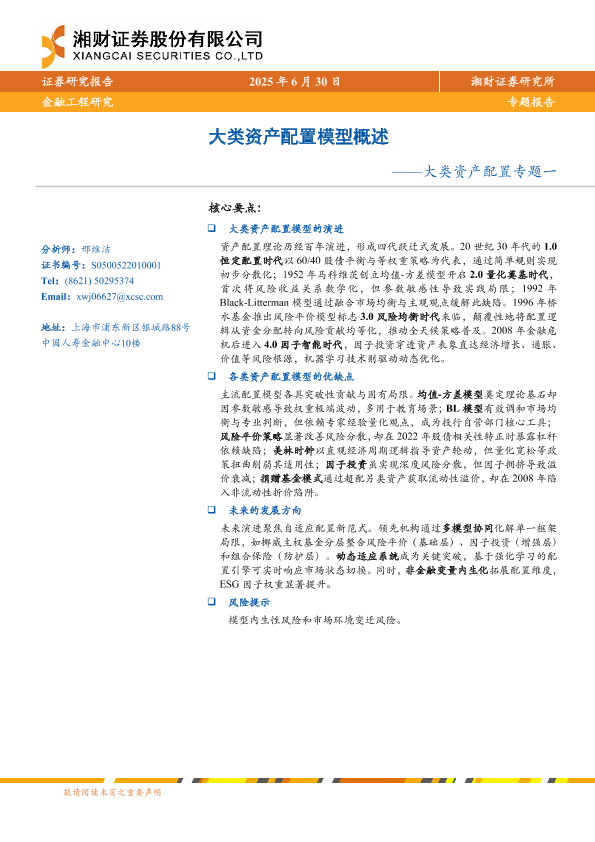 【湘财证券】【20250630】大类资产配置专题:大类资产配置模型概述-10页