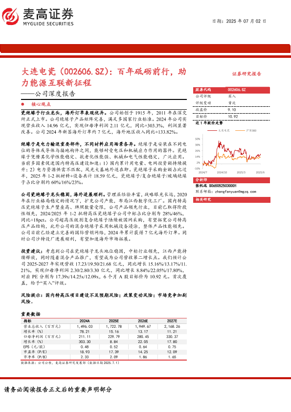 【麦高证券】【20250702】大连电瓷公司深度报告:百年砥砺前行,助力能源互联新征程-25页