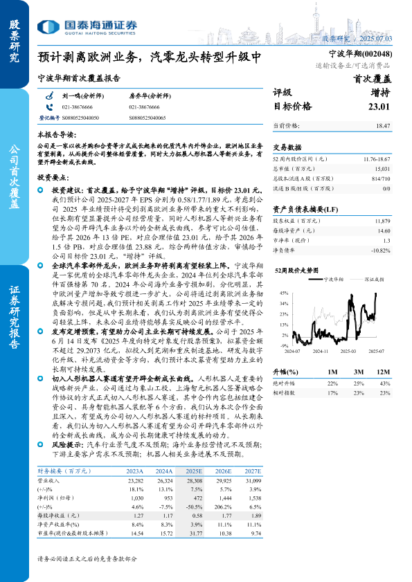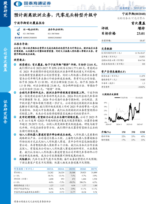 【国泰海通证券】【20250703】宁波华翔首次覆盖报告:预计剥离欧洲业务,汽零龙头转型升级中-15页