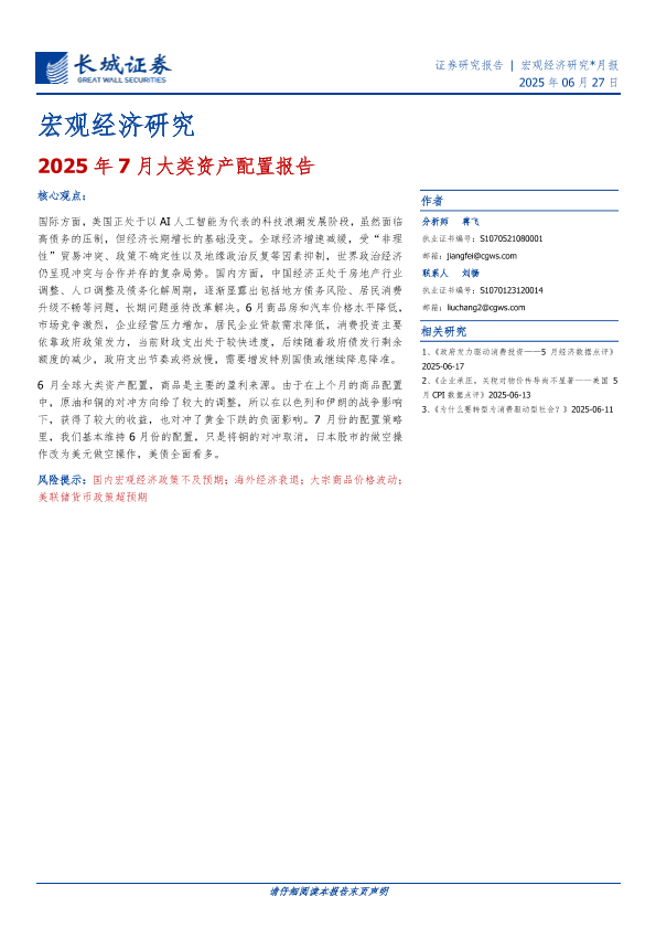 【长城证券】【20250627】2025年7月大类资产配置报告-18页
