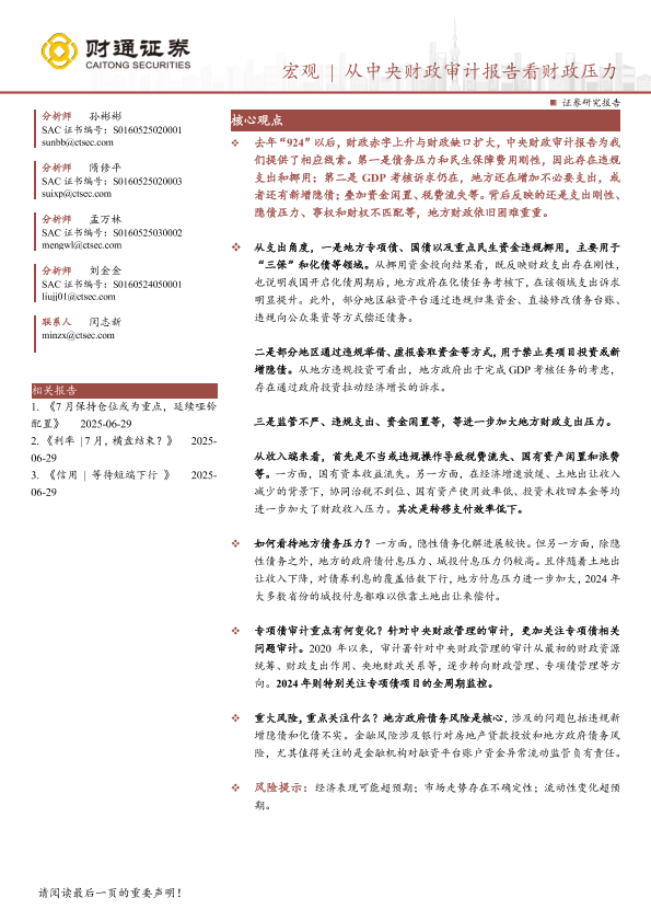 【财通证券】【202506】从中央财政审计报告看财政压力-14页