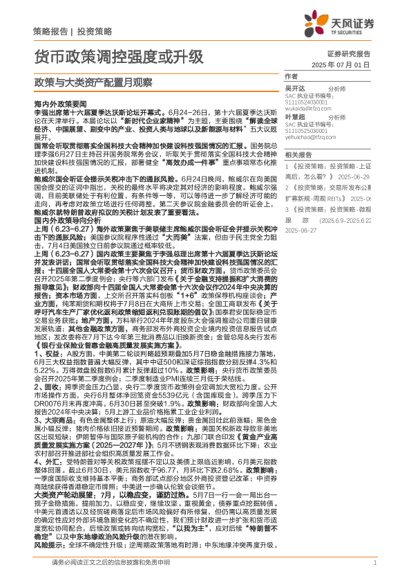 【天风证券】【20250701】政策与大类资产配置月观察:货币政策调控强度或升级-23页