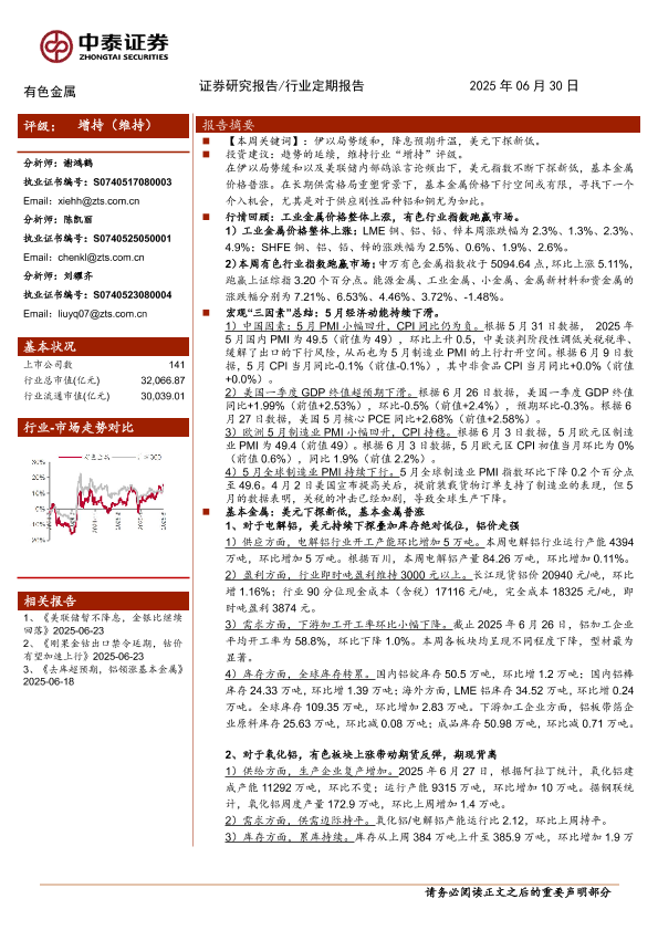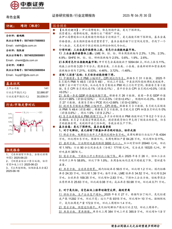 【中泰证券】【20250630】有色金属行业:美元下探新低,基本金属普涨-24页