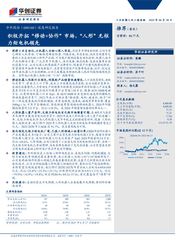 【华创证券】【20250630】步科股份(688160)深度研究报告:积极开拓“移动+协作”市场,“人形”无框力矩电机领先-23页