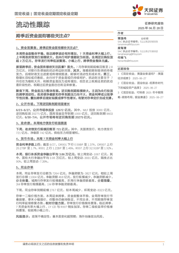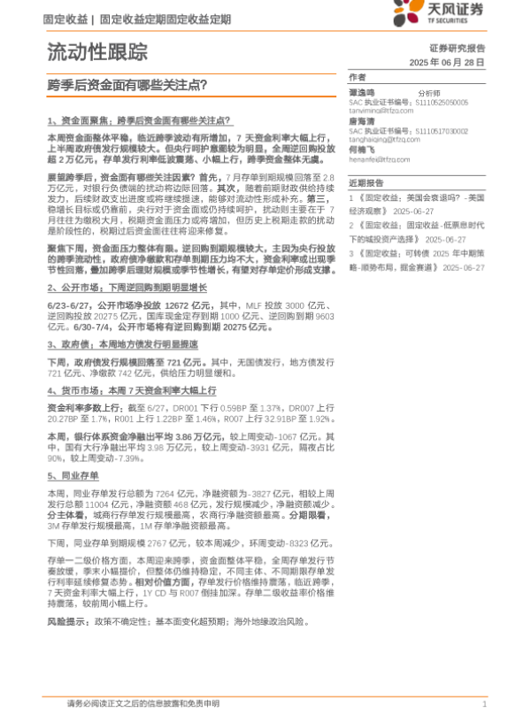【天风证券】【20250628】流动性跟踪:跨季后资金面有哪些关注点?-21页