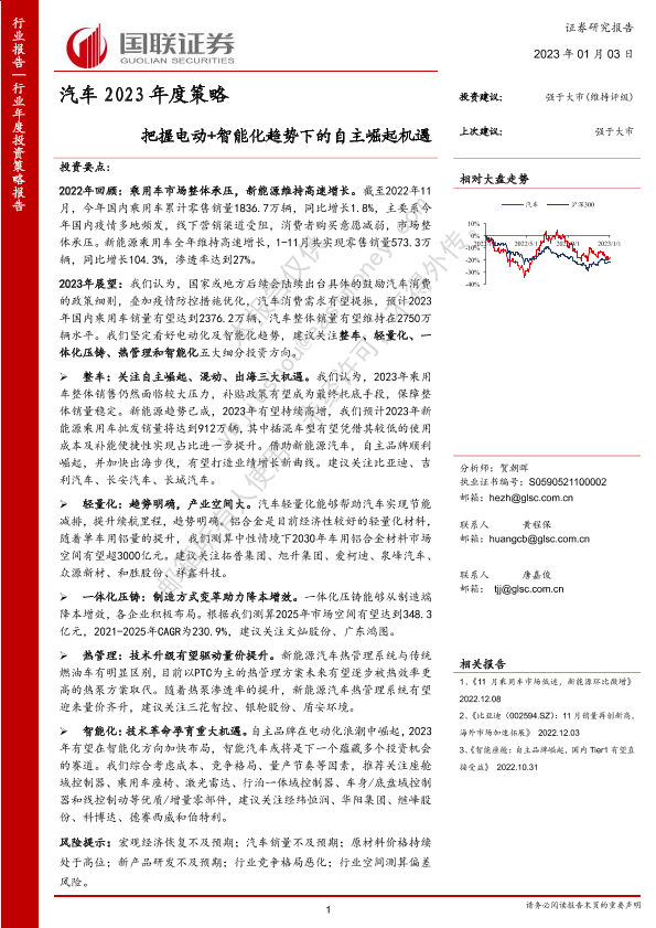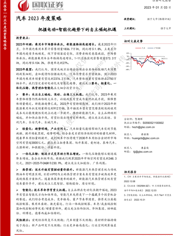 【国联证券】【20230103】汽车2023年度策略:把握电动+智能化趋势下的自主崛起机遇-50页