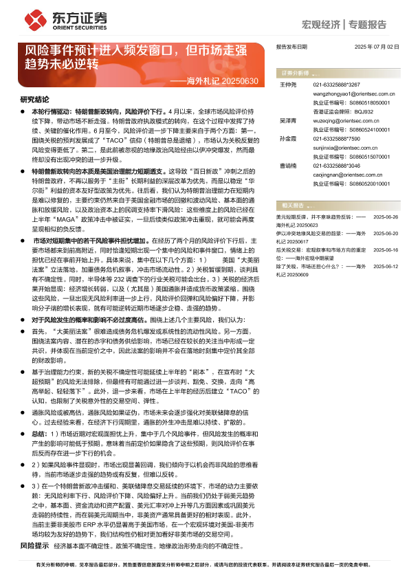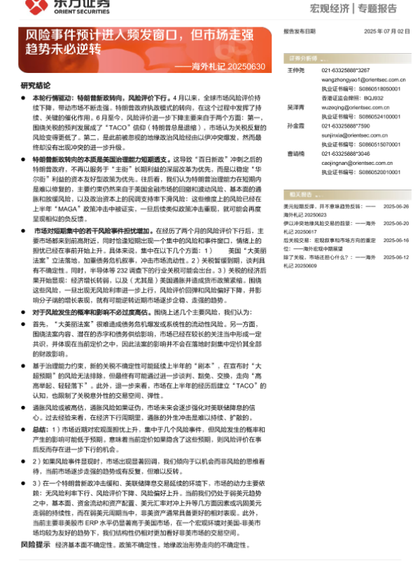 【东方证券】【20250702】海外札记:风险事件预计进入频发窗口,但市场走强趋势未必逆转-15页