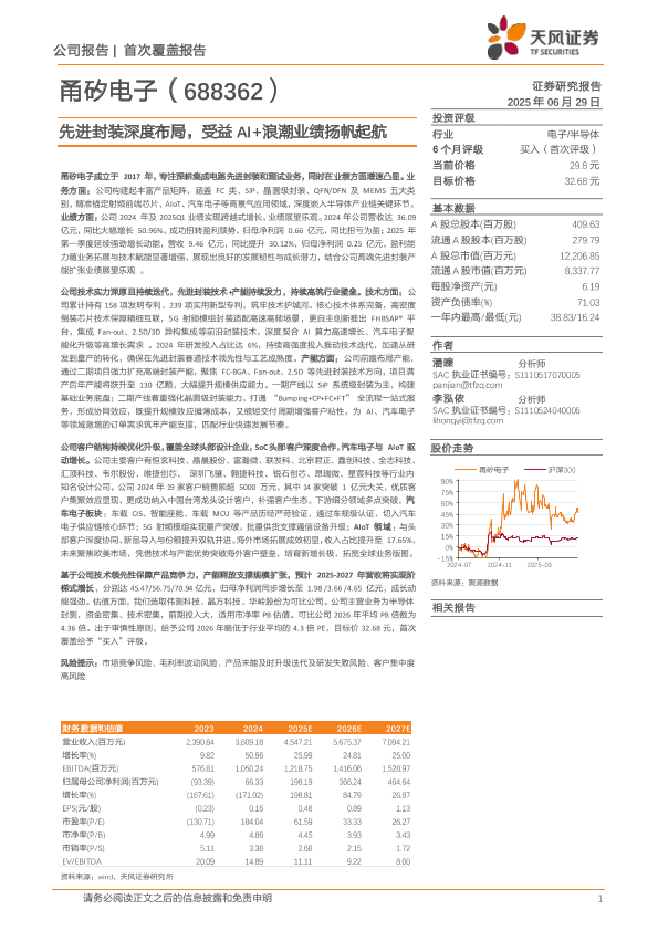 【天风证券】【20250629】甬矽电子(688362)先进封装深度布局,受益AI+浪潮业绩扬帆起航-20页