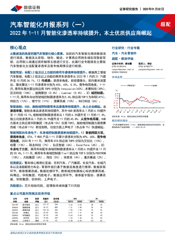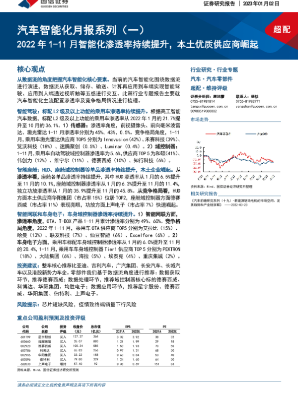 【国信证券】【20230102】汽车智能化月报系列(一):2022年1-11月智能化渗透率持续提升,本土优质供应商崛起-44页