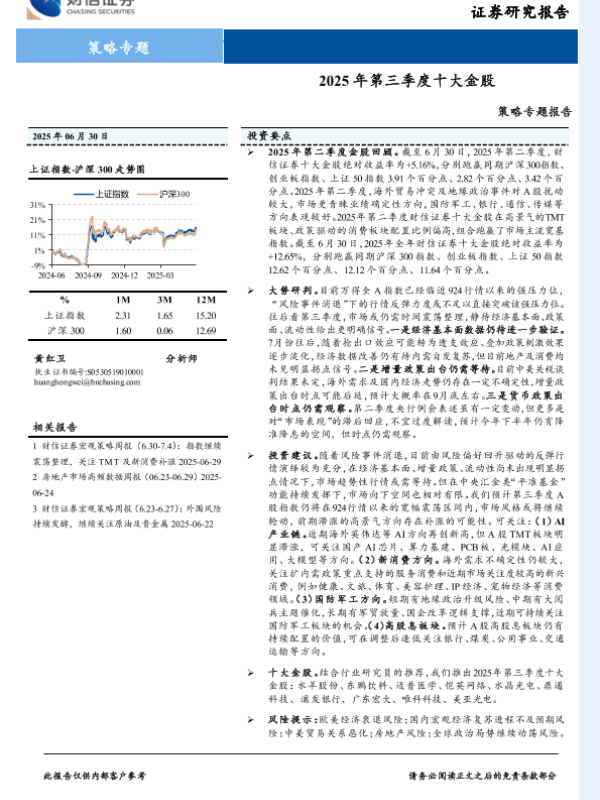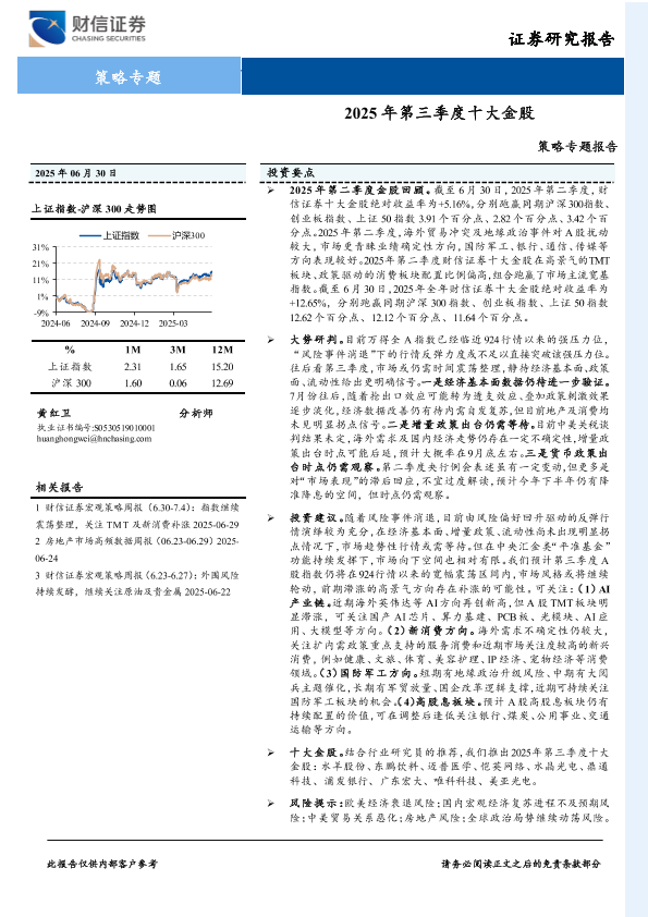 【财信证券】【20250630】2025年第三季度十大金股-11页