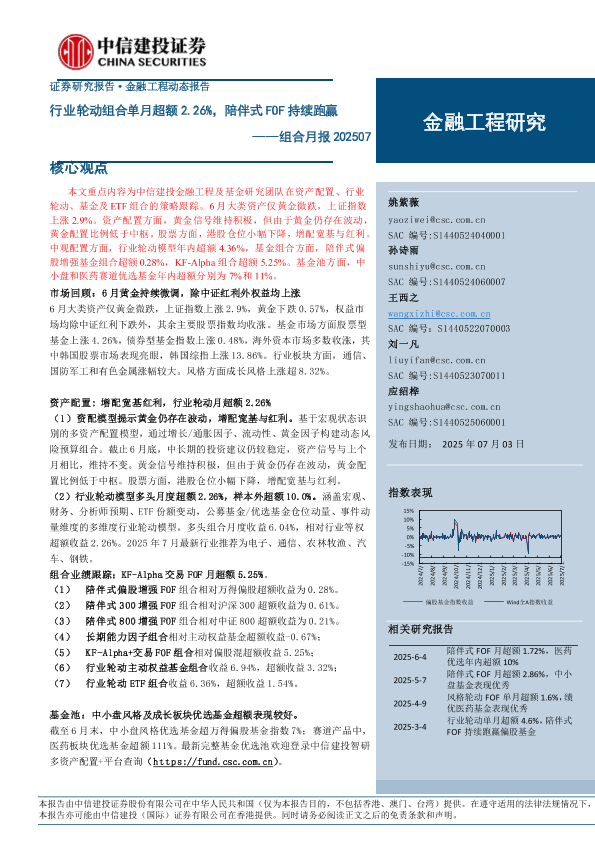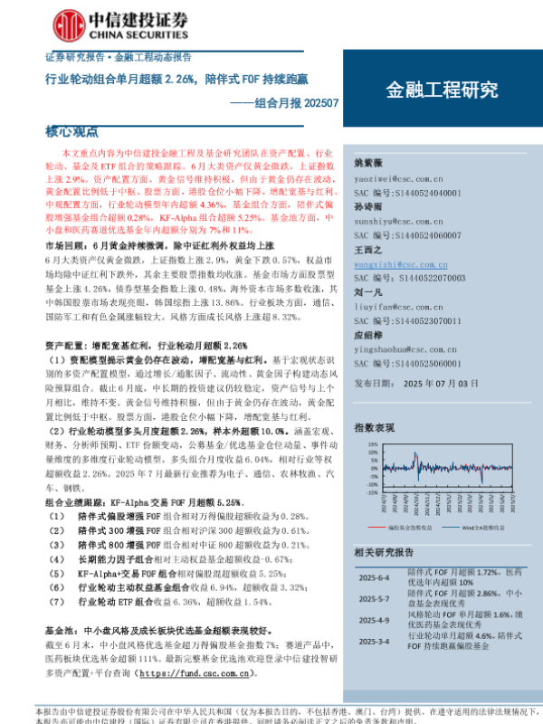 【中信建投证券】【20250703】组合月报:行业轮动组合单月超额2.26%,陪伴式FOF持续跑赢-23页