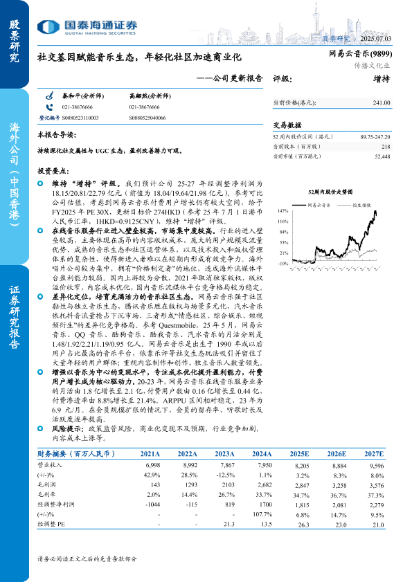 【国泰海通证券】【20250703】网易云音乐公司更新报告:社交基因赋能音乐生态,年轻化社区加速商业化-18页