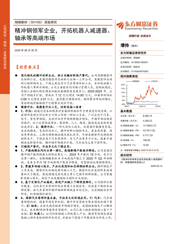 【东方财富证券】【20250630】翔楼新材深度研究:精冲钢领军企业,开拓机器人减速器、轴承等高端市场-31页