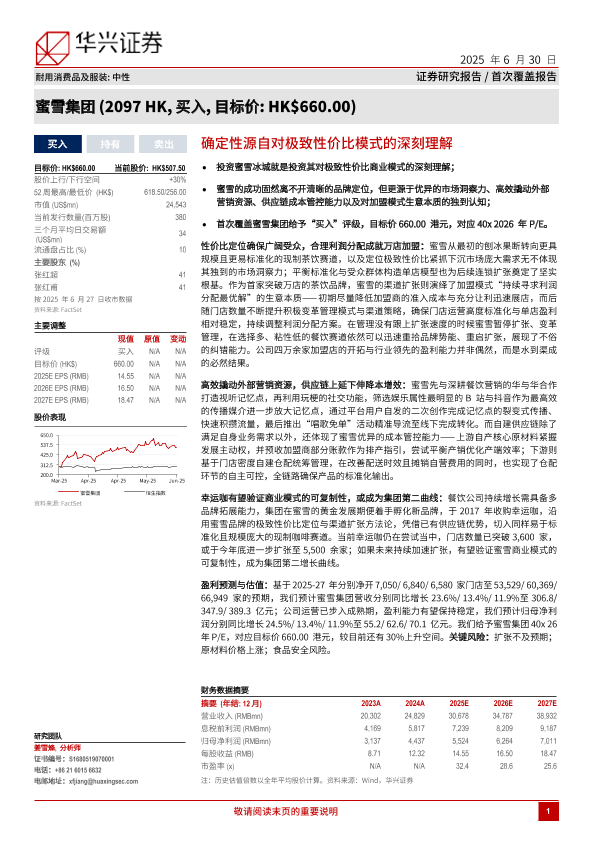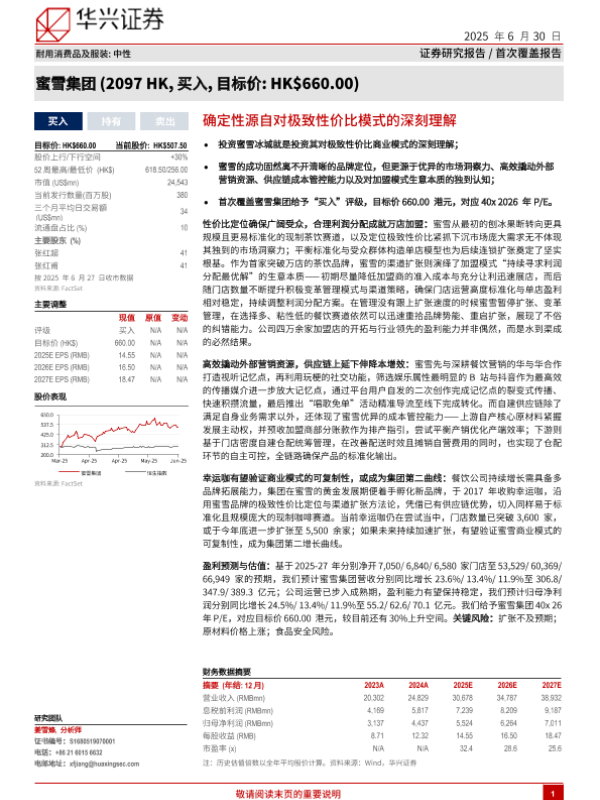 【华兴证券】【20250630】蜜雪集团(2097.HK)确定性源自对极致性价比模式的深刻理解-23页