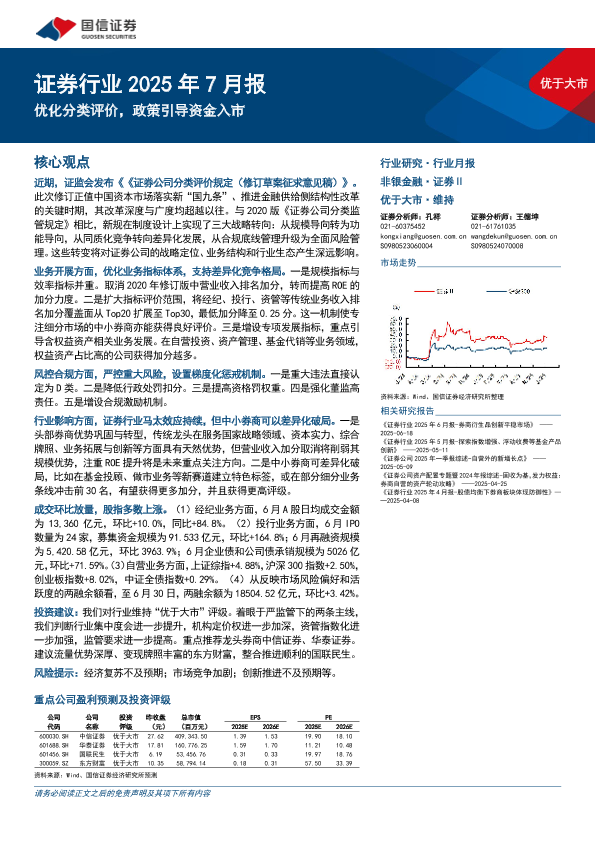 【国信证券】【202507】证券行业2025年7月报:优化分类评价,政策引导资金入市-12页