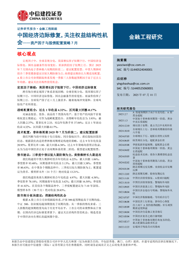 【中信建投证券】【20250701】资产因子与股债配置策略7月:中国经济边际修复,关注权益结构性机会-20页