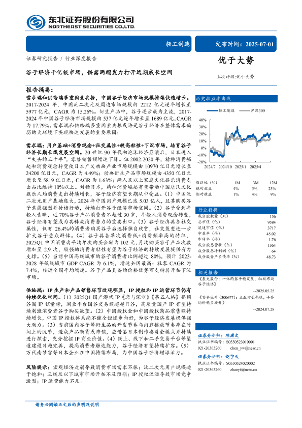 轻工制造 衍生品市场 二次元产业 谷子经济 IP授权