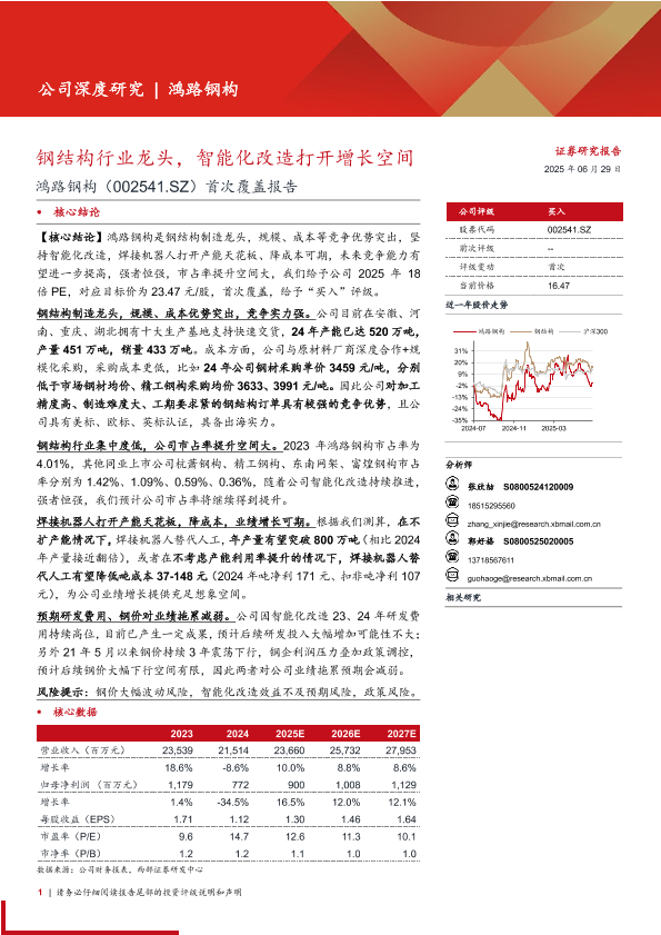【西部证券】【20250629】鸿路钢构首次覆盖报告:钢结构行业龙头,智能化改造打开增长空间-33页