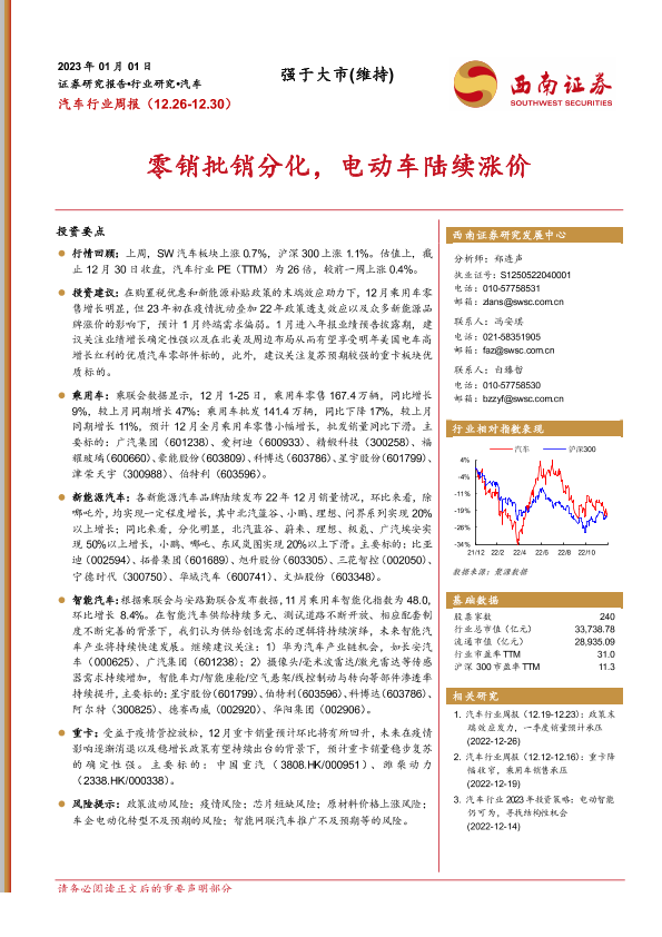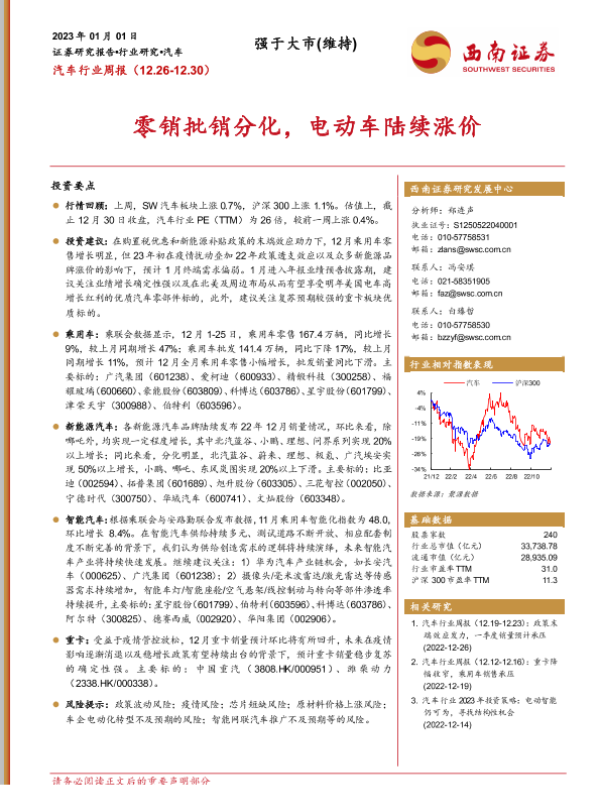 【西南证券】【20230101】汽车行业周报:零销批销分化,电动车陆续涨价-16页