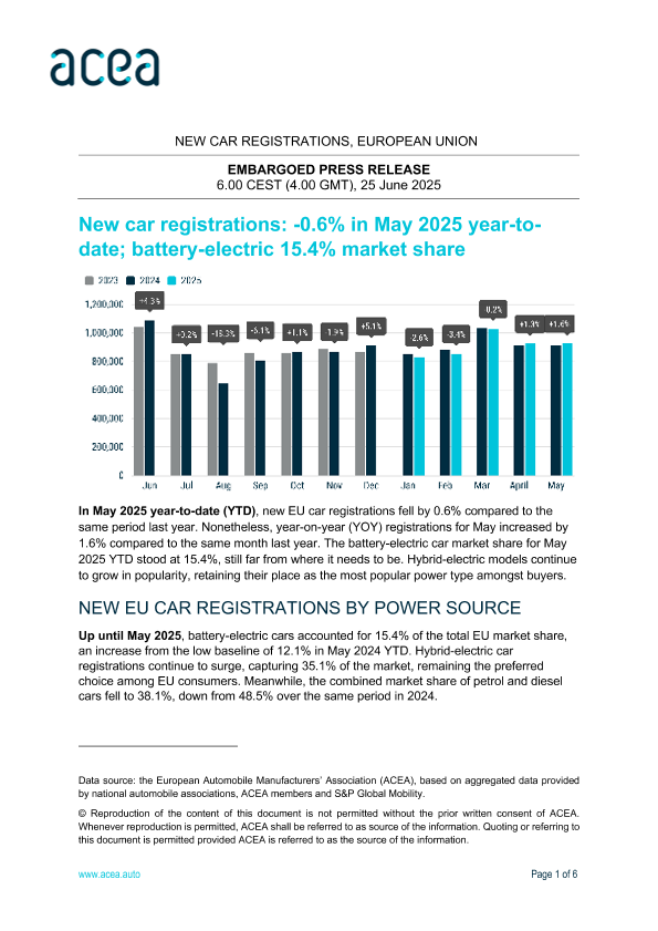 【European Automobile Manufacturers' Association (ACEA)】【20250625】2025年5月欧洲乘用车上牌数据-6页
