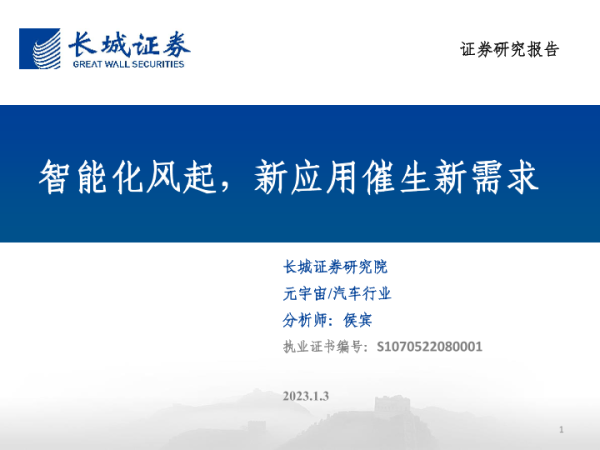 【长城证券】【20230103】汽车行业:智能化风起,新应用催生新需求-50页
