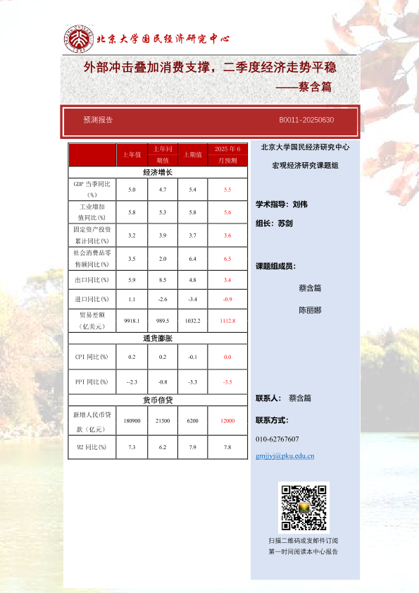 【北京大学国民经济研究中心】【202506】外部冲击叠加消费支撑,二季度经济走势平稳-15页