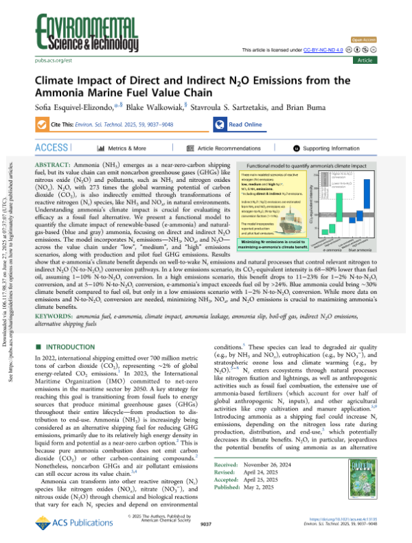 【Sofia Esquivel-Elizondo&Blake Walkowiak&Stavroula S. Sartzetakis&Brian Buma】【20250502】Climate Impact of Direct and Indirect N2O Emissions from the Ammonia Marine Fuel Value Chain-12页