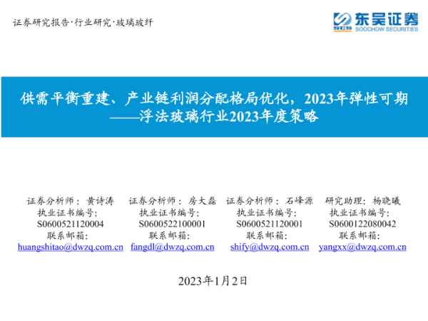 2023展望 供需平衡 利润分配 浮法玻璃 行业策略