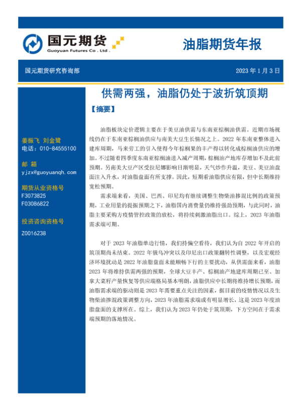 【国元期货】【20230103】油脂期货年报:供需两强,油脂仍处于波折筑顶期-24页