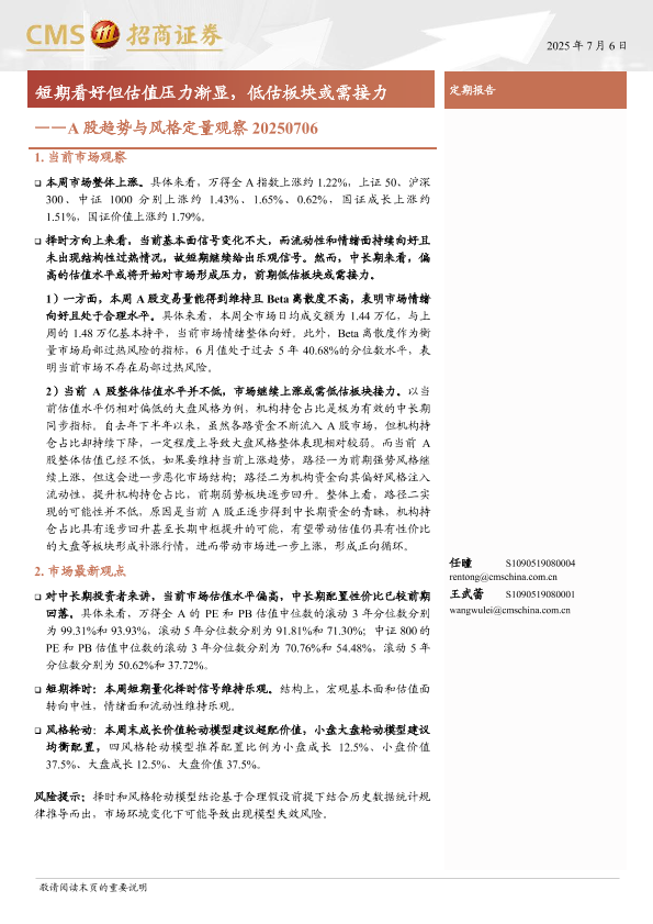 【海通证券】【20250706】A股趋势与风格定量观察-11页