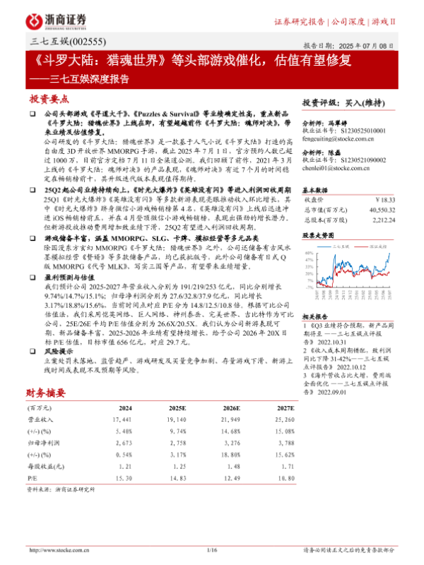 【浙商证券】【20250708】三七互娱(002555)深度报告:《斗罗大陆:猎魂世界》等头部游戏催化,估值有望修复-16页