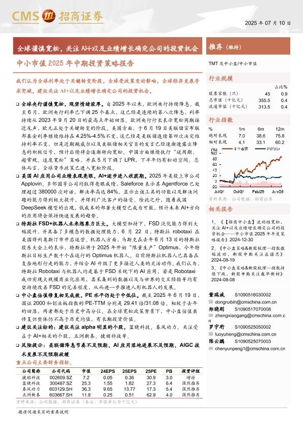 AI应用 投资策略 中小市值 全球经济 宽松政策