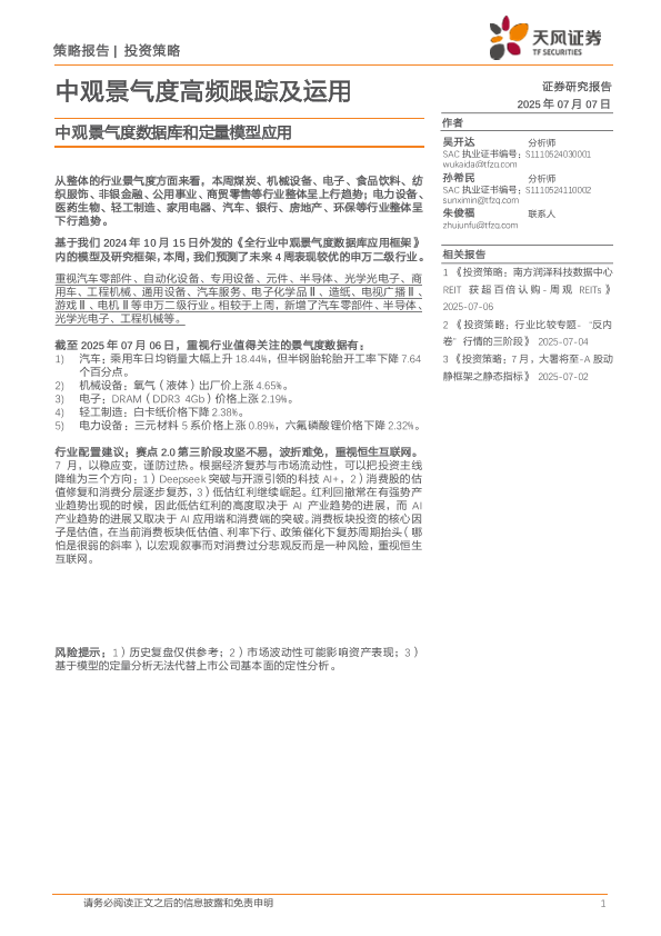 【天风证券】【20250707】中观景气度数据库和定量模型应用:中观景气度高频跟踪及运用-17页