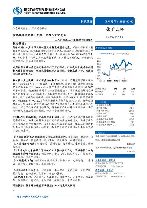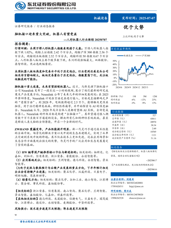 【东北证券】【20250707】人形机器人行业跟踪:脑机接口迎来重大突破,机器人有望受益-12页
