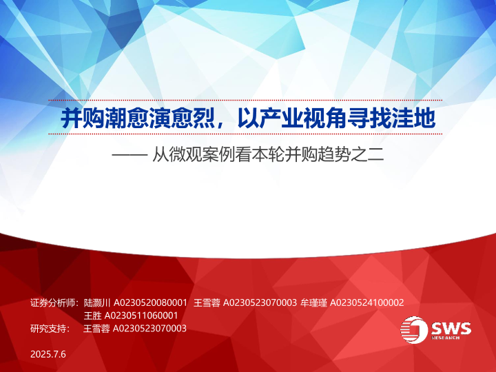 【申万宏源】【20250706】从微观案例看本轮并购趋势之二:并购潮愈演愈烈,以产业视角寻找洼地-35页