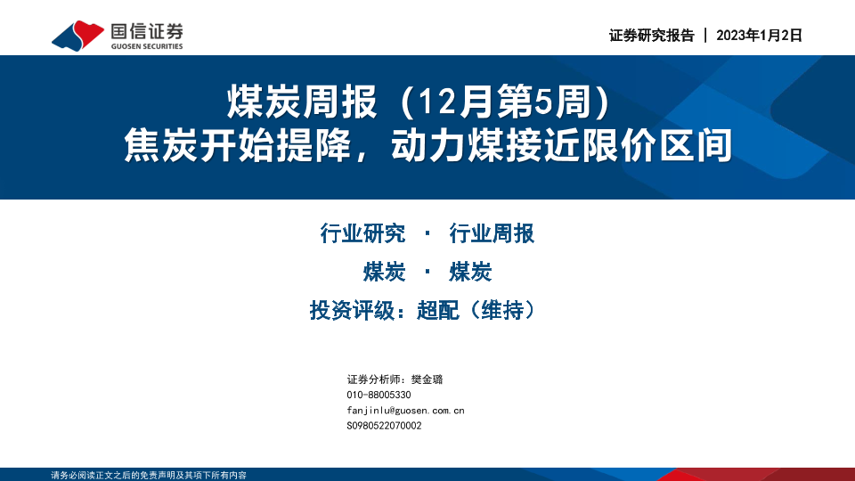 【国信证券】【20230102】煤炭周报(12月第5周):焦炭开始提降,动力煤接近限价区间-28页