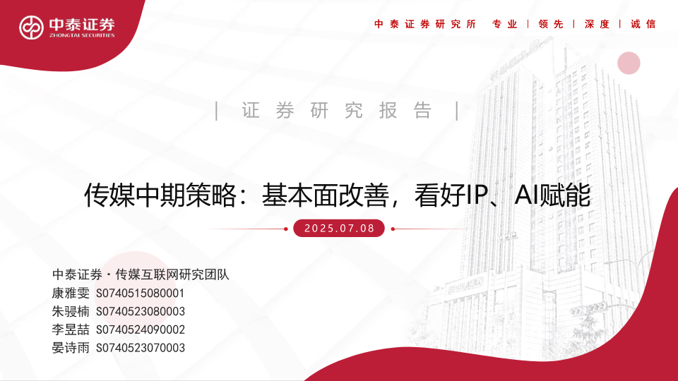 【中泰证券】【20250708】传媒行业中期策略:基本面改善,看好IP、AI赋能-37页