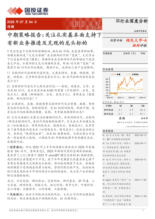 【国投证券】【20250704】传媒行业中期策略报告:关注扎实基本面支持下有新业务推进及兑现的龙头标的-25页