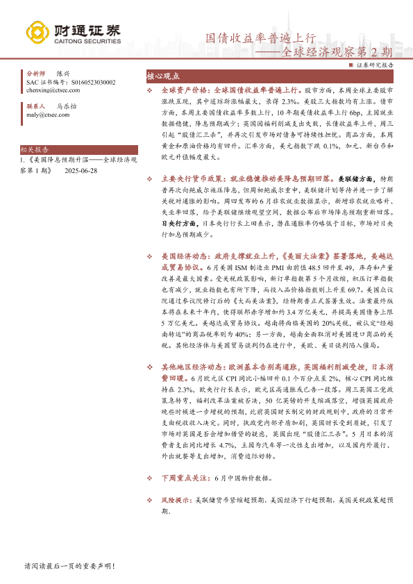 【财通证券】【202507】全球经济观察第2期:国债收益率普遍上行-10页