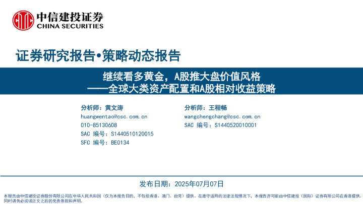 【中信建投证券】【20250707】全球大类资产配置和A股相对收益策略-60页