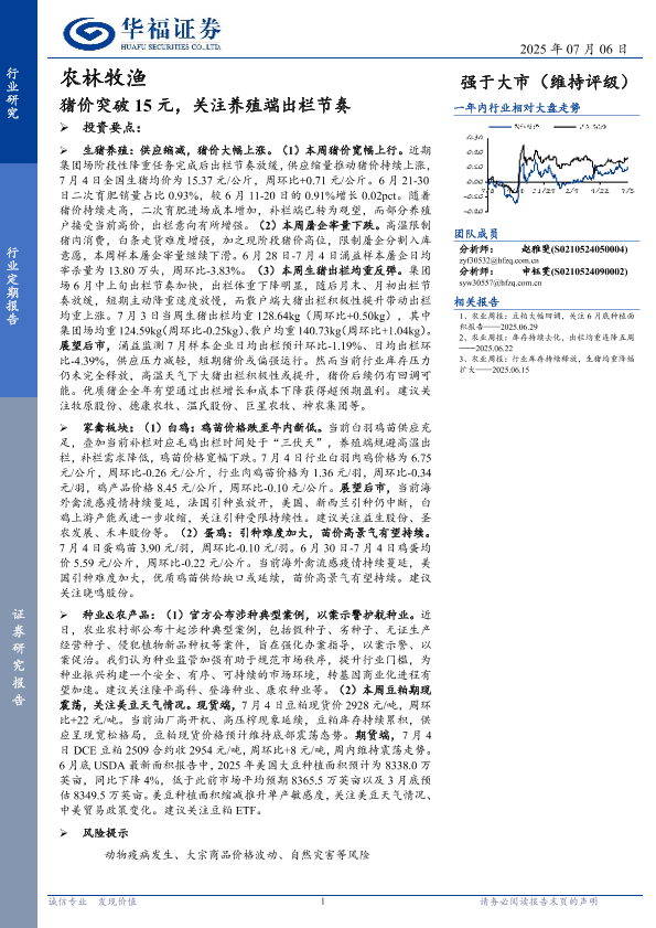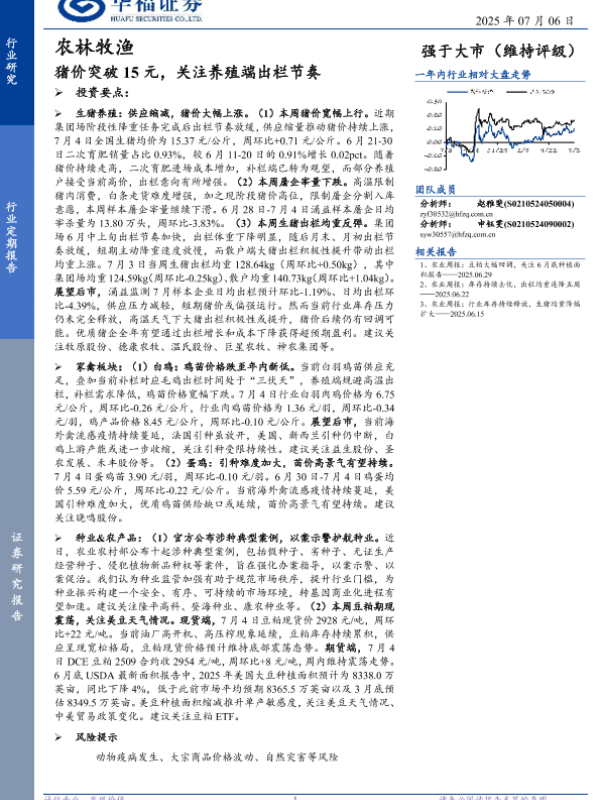 【华福证券】【20250706】农林牧渔行业定期_process报告:猪价突破15元,关注养殖端出栏节奏-11页
