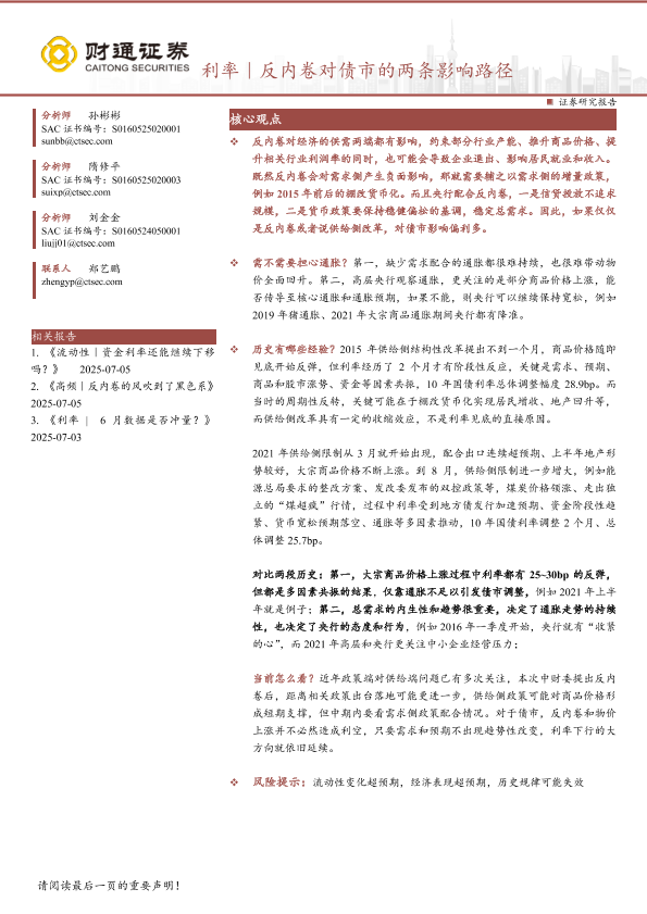 【财通证券】【20250706】利率|反内卷对债市的两条影响路径-17页