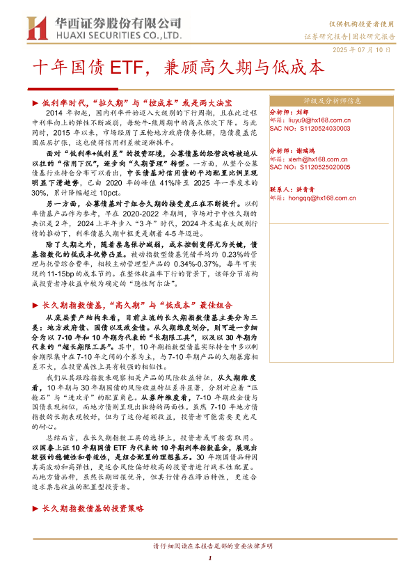 【华西证券】【20250710】十年国债ETF,兼顾高久期与低成本-19页
