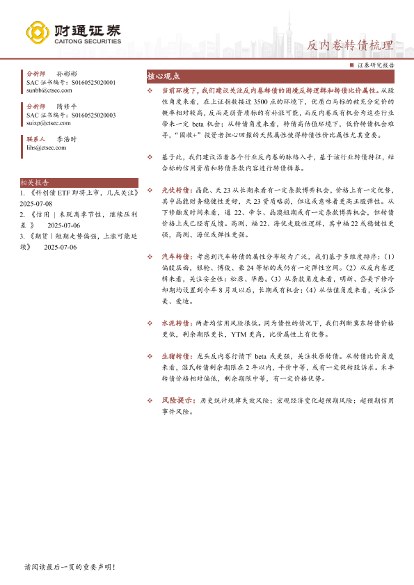 水泥转债 生猪转债 光伏转债 汽车转债 反内卷转债