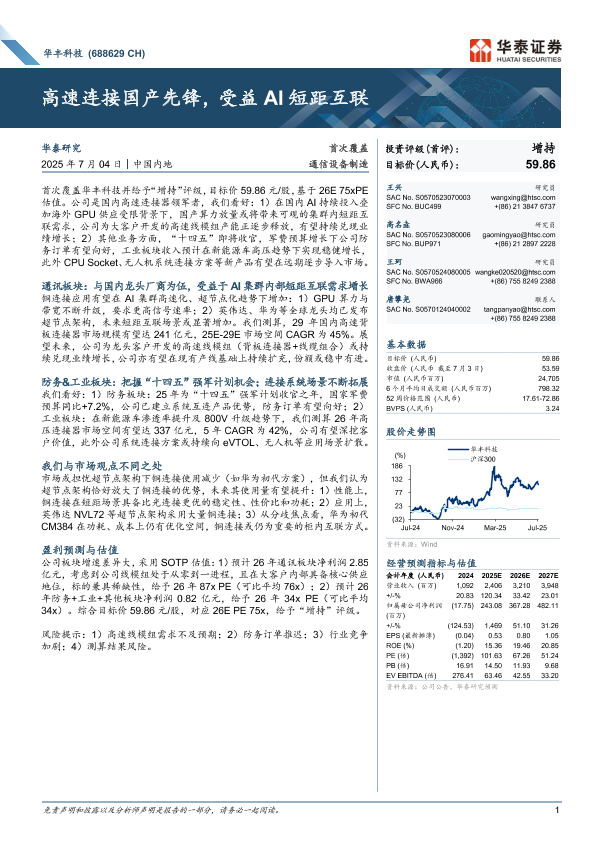【华泰证券】【20250704】华丰科技(688629)高速连接国产先锋,受益AI短距互联-40页
